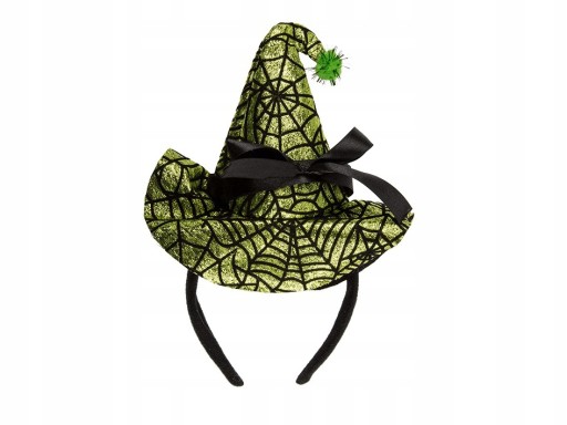 Opaska, która przyda się jako gadżet na imprezie Halloweenowej. Ozdobiona jest małym błyszczącym kapeluszem we wzorze pajęczej sieci. Dodatkowo przystrojona czarną wstążką i ozdobnym bąbelkiem na wierzchołku kapelusza. Element stroju w rozmiarze uniwersalnym. Dostępne dwa kolory. Wysyłamy jako mix.