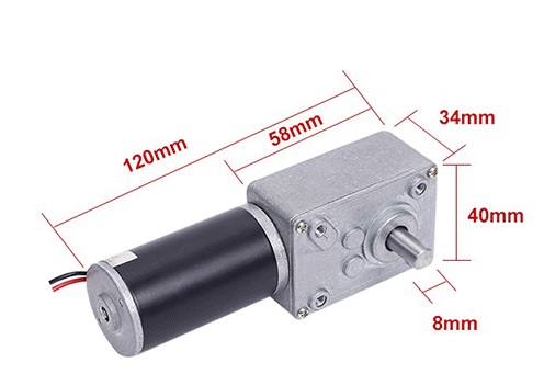 Mini silnik 12V DC wyposażony w przekładnie ślimakową. Przekładnia jest metalowa i samohamowna.