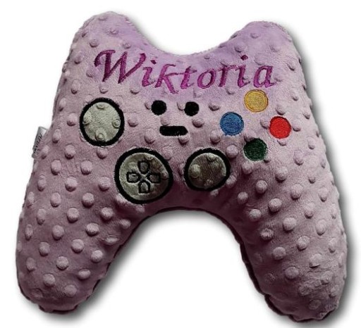 Poduszka w kształcie pada, idealna dla miłośnika gier na konsoli.