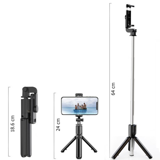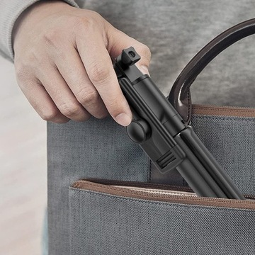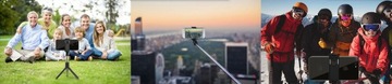 Funkcja Tripod przekształca zwykły selfie stick w solidny statyw, który zapewnia stabilne ustawienie na powierzchni. Dodatkowo, wyposażony w pilot pozwala na zdalne wykonywanie zdjęć z odległości do 10 metrów.