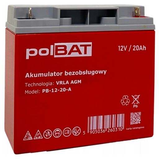- Akumulator AGM (najbezpieczniejsze) do wyboru: 1x 20Ah lub 2x 11Ah (polska produkcja: polBAT/OPTI/Volt)