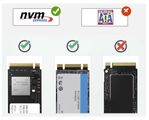 - Kompatybilne dyski: NVMe M-Key i B&M-Key