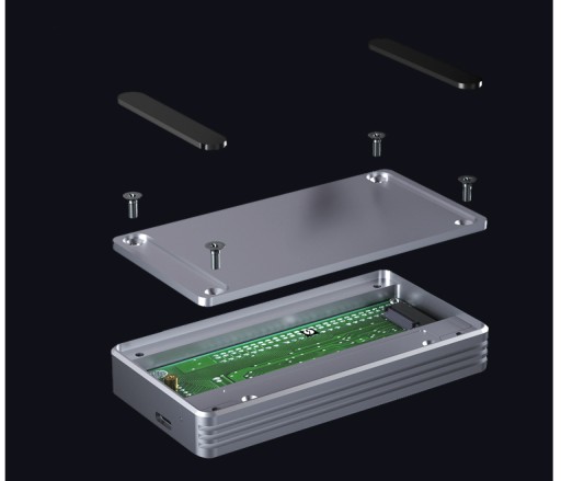 W bardzo prosty sposób zamontujesz dysk NVMe za pomocą dołączonych narzędzi. W obudowie zamontujesz tylko dyski w standardie NVMe z złączami „M key” i „B+M key”.