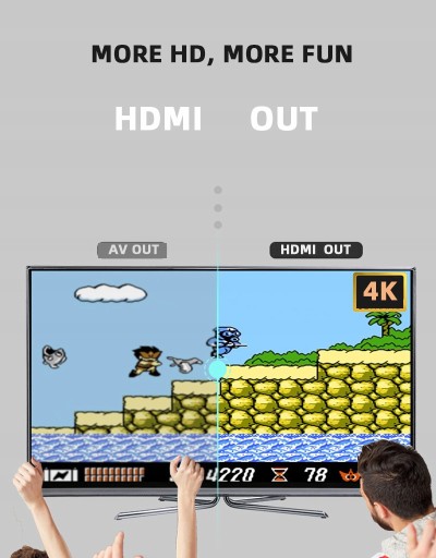 4. Wystarczy podłączyć konsolę do gier do interfejsu wysokiej rozdzielczości telewizora, podłączyć kabel danych zasilania USB do konsoli i dostosować źródło telewizora do kanału wysokiej rozdzielczości, aby wyświetlić ekran listy gier na telewizorze. jest zabawa, prosta i elegancka, łatwa w obsłudze.