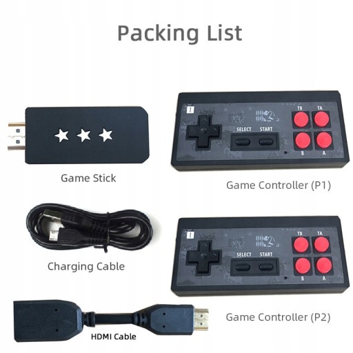 (4) Lista pakowania: 2 * uchwyt bezprzewodowy (musi być wyposażony w baterię AAA), 1 * host HD, 1 * kabel USB do transmisji danych, 1 * instrukcja w języku angielskim