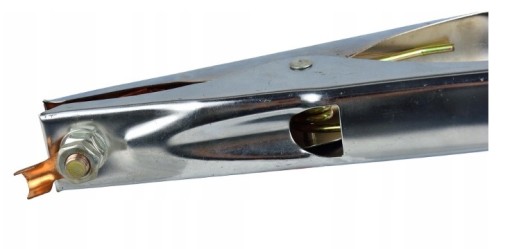 Śruby mocujące oraz styki zapewniają bardzo dobrą przewodność prądu. Miedziana plecionka wewnątrz szczęk, zapewnia optymalną powierzchnie styku przewodu masowego na zapinanym elemencie. Kleszcze wykonane z blachy stalowej niklowanej.