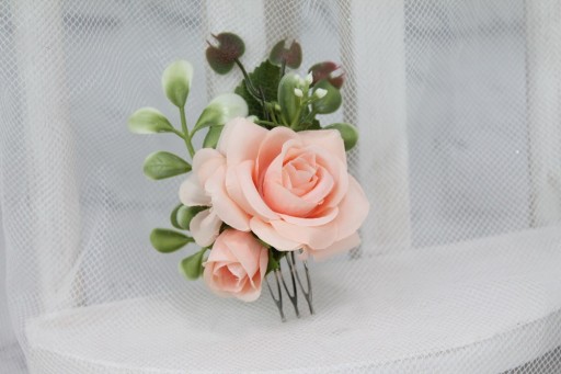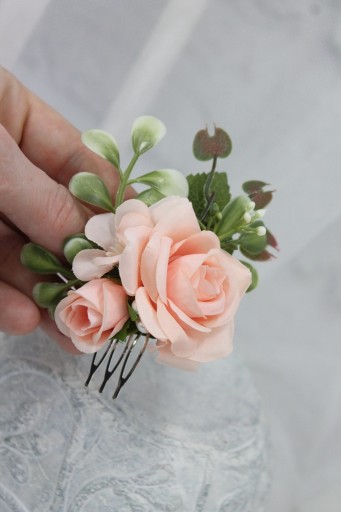 Grzebyk do włosów ślubny mały ŁOSOŚ róże ozdoba