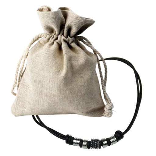 Każdy naszyjnik jest zapakowany w woreczek lniany i jest gotowy do wręczenia jako prezent.