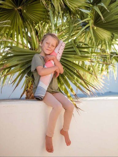 Mata do jogi i zabawy, zaprojektowana z myślą o małych joginach. Pobudza wyobraźnię małych odkrywców jednocześnie nie rozpraszając podczas praktyki. Wzór zaprojektowany jest tak, aby sprzyjał koncentracji podczas ćwiczeń.