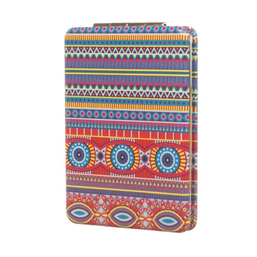 Składane lusterko kieszonkowe, w jednej części posiada powiększenie.