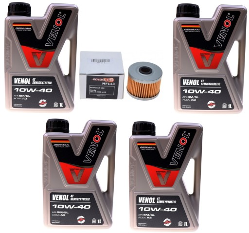 Filtr oleju MotoFiltro HF113 + olej venol 4t 10w-40 -4 litry