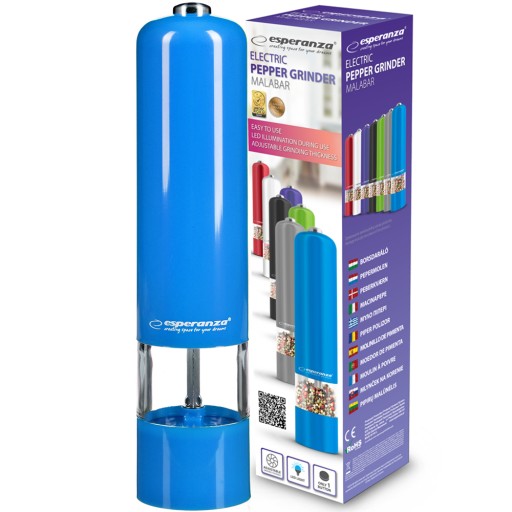 ELEKTRYCZNY MŁYNEK PIEPRZ SÓL PRZYPRAW LED niebieski
