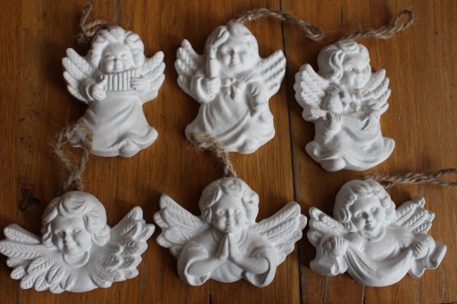 Jeden komplet liczy 50 sztuk + 5 sztuk GRATIS (na wypadek, gdyby coś się uszkodziło) = 55 sztuk gipsowych aniołków.