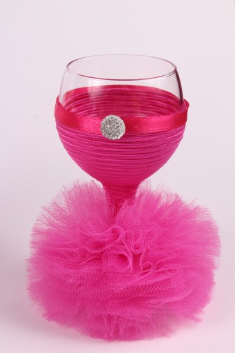 Idealny na ślub ( np. dla Pani Młodej, świadkowej), bal, urodziny, rocznicę, wyjątkowe okazje. Kieliszek ubrany jest w piękną tiulową sukienkę.