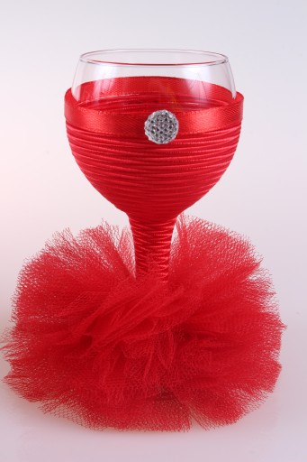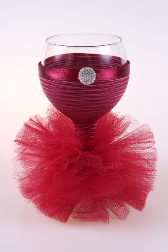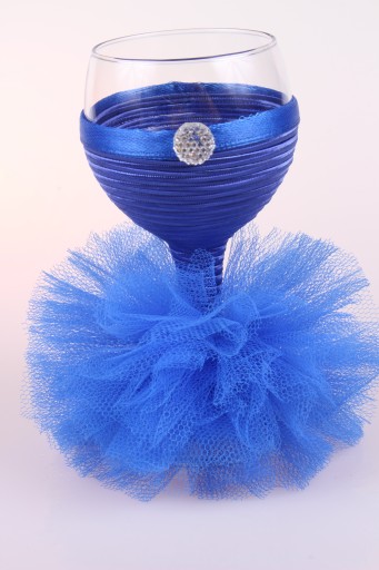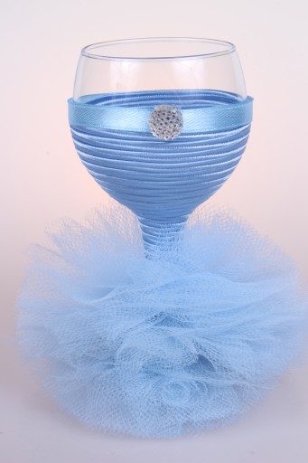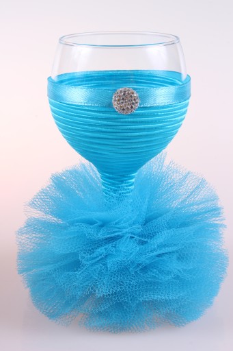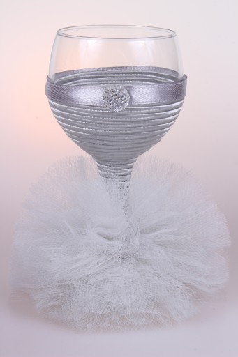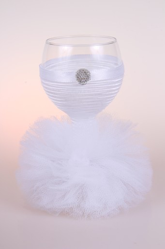 Idealny na ślub ( np. dla Pani Młodej, świadkowej), bal, urodziny, rocznicę, wyjątkowe okazje. Kieliszek ubrany jest w piękną tiulową sukienkę.