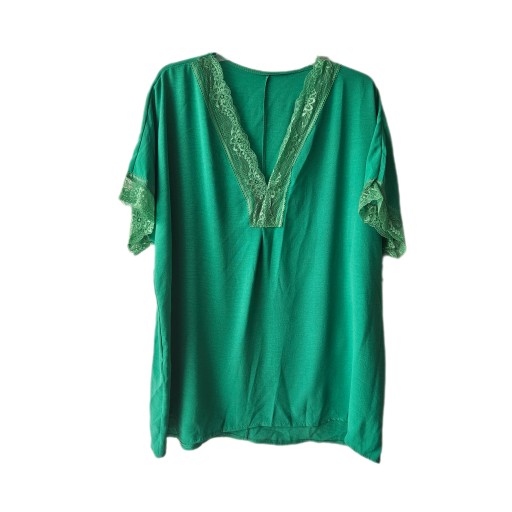 Gładkie Topy z koronką na krótki rękaw, świetnie nadadzą się pod marynarki, dostępne w kolorach; chaber, błękit, camel, beż, butelkowa zieleń, zielona, różowa, khaki, czarna i biała