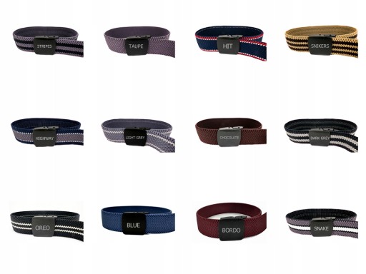 Idealne uzupełnienie do różnego rodzaju spodni. Standardowy, elastyczny z łatwo regulowaną sprzączką-klamrą dla optymalnego dopasowania i wygody. Nowy, wytrzymały, doskonały pasek dostępny w różnych kolorach i wzorach.