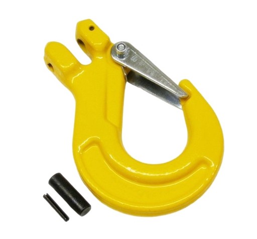 WYKONANIE: Hak malowany proszkowo, wykonany ze stali kutej matrycowo hartowanej w klasie wytrzymałości 8. Hak posiada zapadkę na sprężynie która zabezpieczającą cięgno przed wypięciem z haka.
