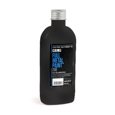 Full Metal Paint 200 jest synonimem jasnych, błyszczących kolorów i maksymalnego krycia. Dostarczany w odpornej na wstrząsy plastikowej butelce jest najlepszym wyborem do uzupełnienia całej gamy markerów Grog z niebieską etykietą. Full Metal Paint 200 jest wypełniony 200 ml farby pigmentowej na bazie alkoholu, zoptymalizowanej pod kątem markerów Squeezer. Idealny do sesji na świeżym powietrzu, świetnie sprawdza się na ciemnych powierzchniach.
