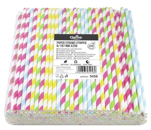 Соломинки Aku Clarina 197мм fi6 250шт Eco STRIPES!
