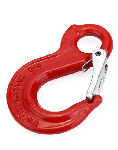 WYKONANIE: Hak malowany proszkowo, wykonany ze stali kutej matrycowo hartowanej w klasie wytrzymałości 8. Hak posiada zapadkę na sprężynie która zabezpieczającą cięgno przed wypięciem z haka.