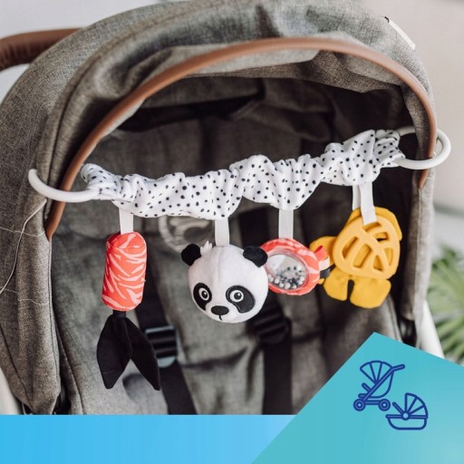 Zawieszka sensoryczna do wózka to doskonały pomysł na pierwszą zabawkę dla niemowląt, która umili każdy spacer i podróż. Idealna do wózka i fotelika samochodowego – zawieszka jest montowana za pomocą bezpiecznych i wygodnych plastikowych obręczy, znajdujących się na obu jej końcach.