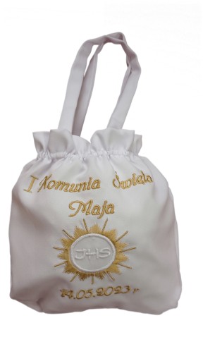 Personalizowana haftowana torebka komunijna z imieniem i datą
