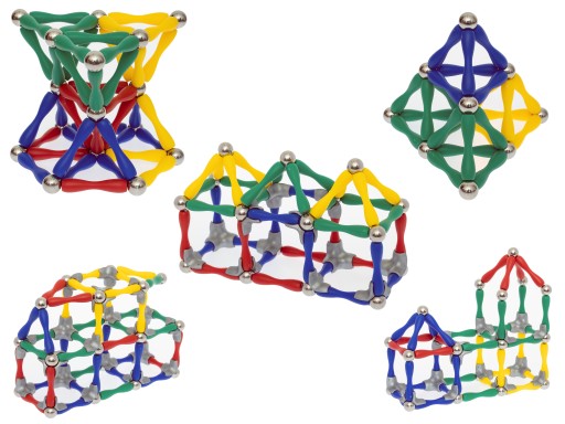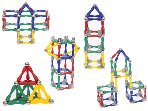 ➤wykorzystane jako pomoc naukowa uczą geometrii, w połączeniu z elementami innych zestawów pomogą w nauce matematyki, fizyki czy chemii (klocki kleją się do tablic magnetycznych