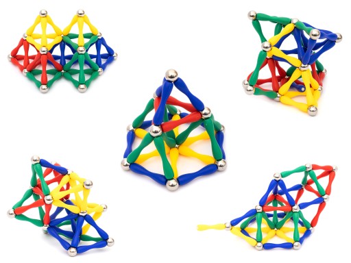 Z klocków magnetycznych można tworzyć wzory chemiczne, fizyczne i matematyczne.