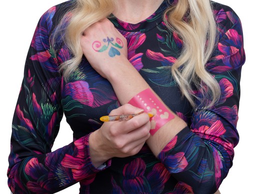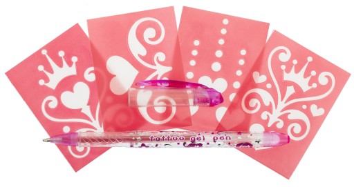 Proponujemy zestaw do robienia tatuaży, który sprawdzi się na dziecięcych przyjęciach urodzinowy lub zabawy z koleżankami. Pobudzi to kreatywność Twojego dziecka oraz zdolności artystyczne. Sama zabawa również zwiększy precyzję i cierpliwość u najmłodszych.