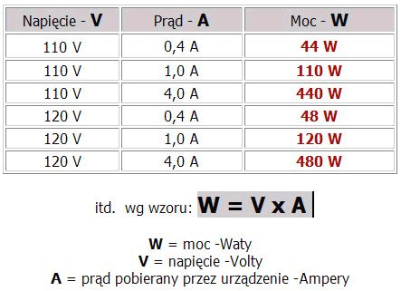 Służy do podłączenia urządzeń z rynku amerykańskiego o maksymalnej mocy 100W