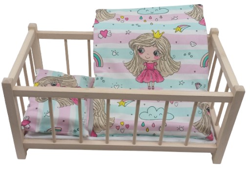 ŁÓŻECZKO DREWNIANE DLA LALEK LALKI + POŚCIEL 3 EL Seria 10