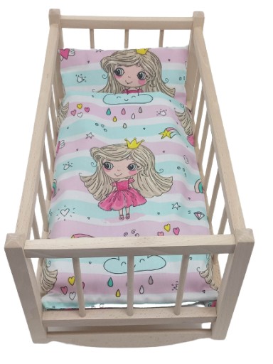 - DREWNIANA KOŁYSKA Z KOMPLETEM POŚCIELI (3 elementy)