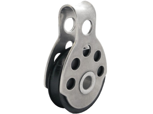Pojedynczy bloczek nierdzewny z trwałą rolką z tworzywa sztucznego.