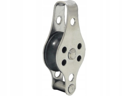 Pojedynczy bloczek nierdzewny o uniwersalnym zastosowaniu, wyposażony w trwałą rolkę z tworzywa sztucznego.