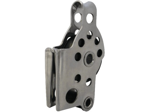 Pojedynczy bloczek nierdzewny z trwałą rolką z tworzywa sztucznego.