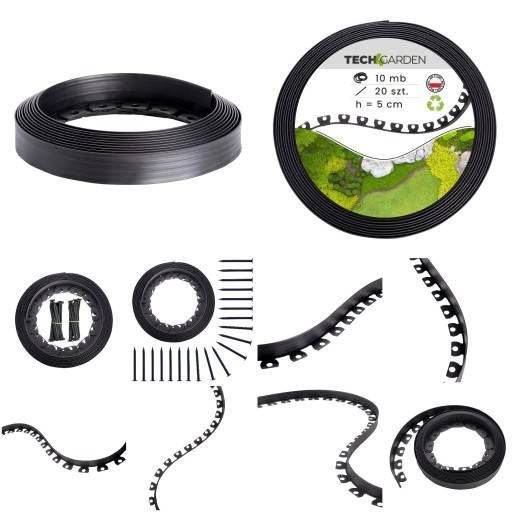 Obrzeże w rolce o wysokości 5 cm i długości 10 metrów wraz z kompletem 20 kotw o długości 18 cm