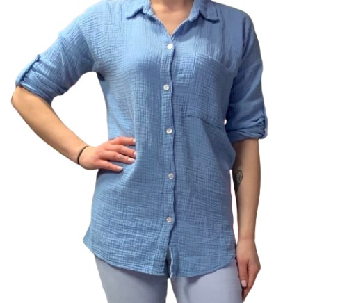 Koszula z długim rękawem, zapinana po całości na guziki. Idealna propozycja na nadchodzący sezon, wykonana z przewiewnego materiału dzięki czemu zapewnia komfort noszenia. Idealna także na kostium kąpielowy .Prosty/oversizowy fason sprawdzi się w wielu stylizacjach. Dostępna w kilku wariantach kolorystycznych!
