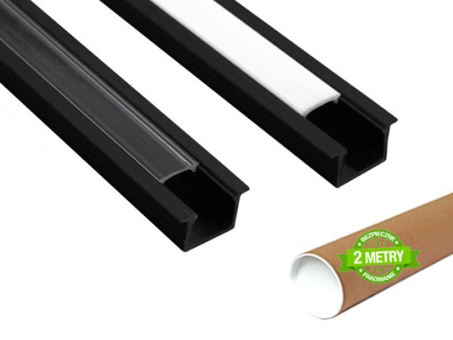 PROFIL LED WPUSZCZANY CZARNY PREMIUM - 2 METRY + KLOSZ KLIK MLECZNY LUB TRANSPARENTNY - 11 x 22mm