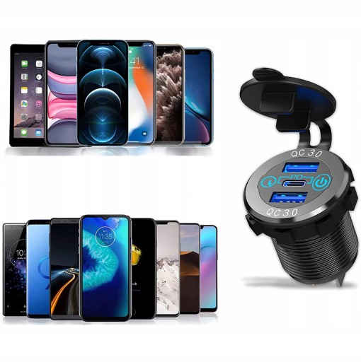 【Szybkie ładowanie Dual QC 3.0 PD Type-C】