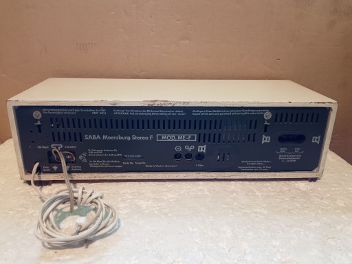 Amplituner Vintage : SABA Meersburg Stereo . Podświetlenie nie sprawne . Radio odbiera a funkcje są sprawne , brakuje jednej nasadki gałki !Całość gra ładnie . Wymiary : 560 x 160 x 210 mm . Waga : 6Kg .