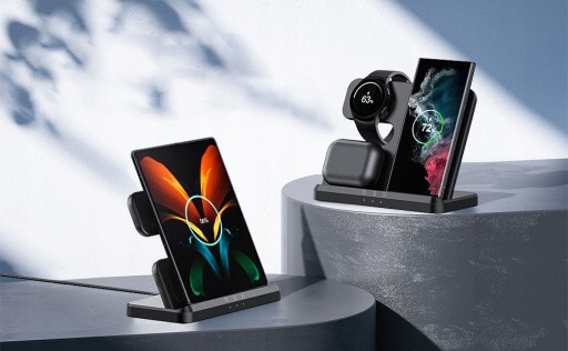 - Stacja ładowania indukcyjnego. Dzięki tej stacji ładującej 3 w 1 możesz ładować wiele urządzeń jednocześnie w jednym, schludnym i zorganizowanym miejscu.