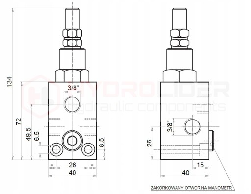 - Ilość otworów hydraulicznych w korpusie: 3 (+ wyjście na manometr)