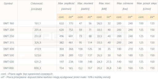 Bardzo wytrzymałe i mocne silniki hydrauliczne BMT 200 o dużej wartości momentu obrotowego, polecane do pracy w bardzo ciężkich warunkach pod dużym obciążeniem w różnego typu urządzeniach rolniczych i przemysłowych. W układach gdzie silnik ma bardzo duże zapotrzebowanie na moc i moment obrotowy.