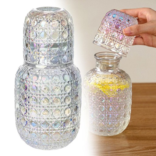 Vintage grube szkło: wykonana z grubego szkła, ta nocna karafka i szklany zestaw z estetycznym wzorem zaprojektowanym na krystalicznie czystym korpusie, dzięki czemu wygodniej jest trzymać ją w dłoni.