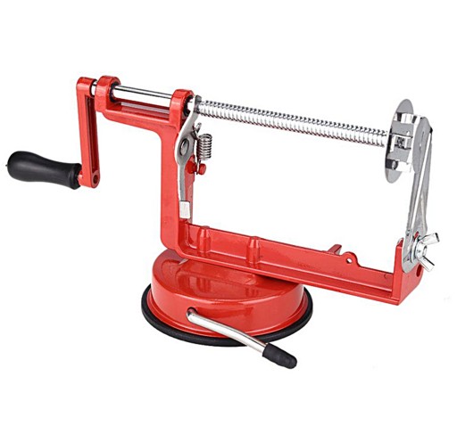 Maszynka ręczna do robienia popularnych na wielu imprezach plenerowych smażonych zakręconych frytek. Wykonana jest z metalu, a ziemniaki nabijane są na drewniane szpikulce, posiada też mocowanie do blatu za pomocą przyssawki. Jest stabilna i bardzo wygodna w użyciu oraz łatwa do utrzymania w czystości.