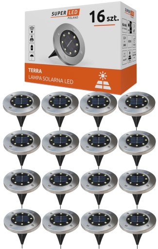 Zestaw 16x wodoszczelnych lamp marki SuperLED w kolorze inox. Sprawdzą się jako dekoracyjne i praktyczne oświetlenie Twojego ogrodu.