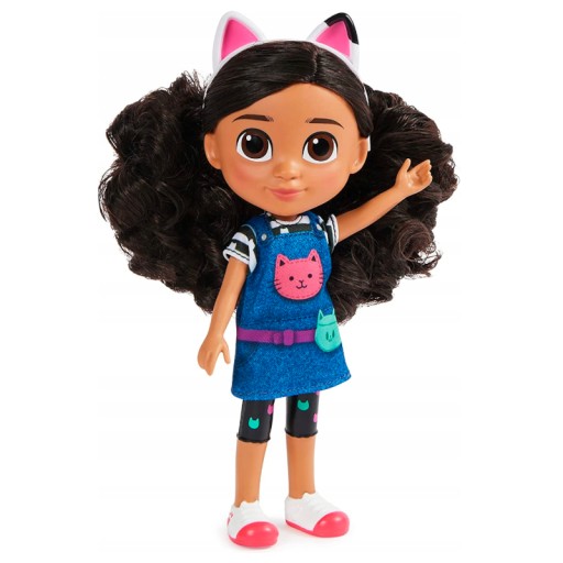 Laleczka Gabi jest ubrana w uroczy strój, a na głowie ma swoją magiczną opaskę z kocimi uszkami. Laleczka ma prawdziwe włosy, które można czesać i stylizować.