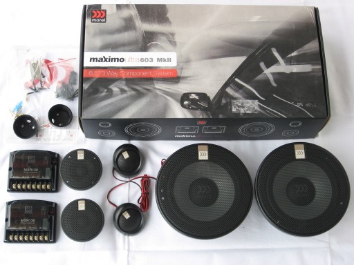 Dwudrożny zestaw głośników Morel Maximo Ultra 603 posiada wszystkie cechy, które zadowolą zarówno wkraczających w świat dźwięku amatorów, jak i wyczulonych na dźwięk audiofilów. Zestaw pozostaje odseparowany i posiada wyjątkowe dodatki w postaci aluminiowych korektorów fazy oraz dwudrożnych zwrotnic pasywnych. Dodatkowo w komplet wchodzą także po dwie sztuki średnio-niskotonowych wooferów i wysokotonowych tweeterów oraz grille na głośniki. By cały proces montażu przebiegł szybko i gładko, do zestawu dołączono również niezbędne akcesoria, przewody montażowe oraz instrukcję obsługi. Bezproblemowa instalacja zagwarantuje szybsze zderzenie z niesamowitym efektem dźwięku wzmacniaczy.