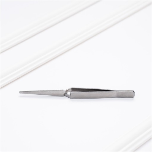 Pęseta sama trzyma zacisk na formie. Pozwala na większą swobodę w czasie pracy. Może również służyć do nabierania ozdób do paznokci.